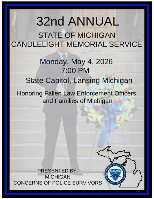 Michigan Concerns of Police Survivors (MI-C.O.P.S.) provides resources to assist in the rebuilding of the lives of surviving families of law enforcement officers, killed in the line of duty as determined by federal criteria. Furthermore, MI-C.O.P.S. provides training to the law enforcement agencies on survivor’s victimization issues and educates the public of the need to support the law enforcement profession and its survivors.